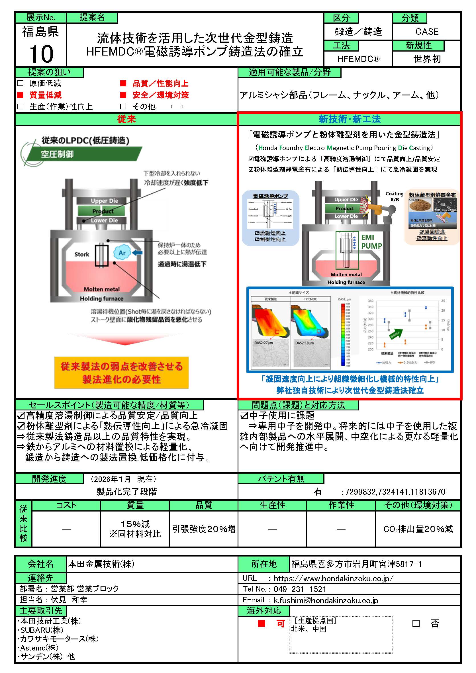 流体技術を活用した次世代金型鋳造 HFEMDC®電磁誘導ポンプ鋳造法の確立