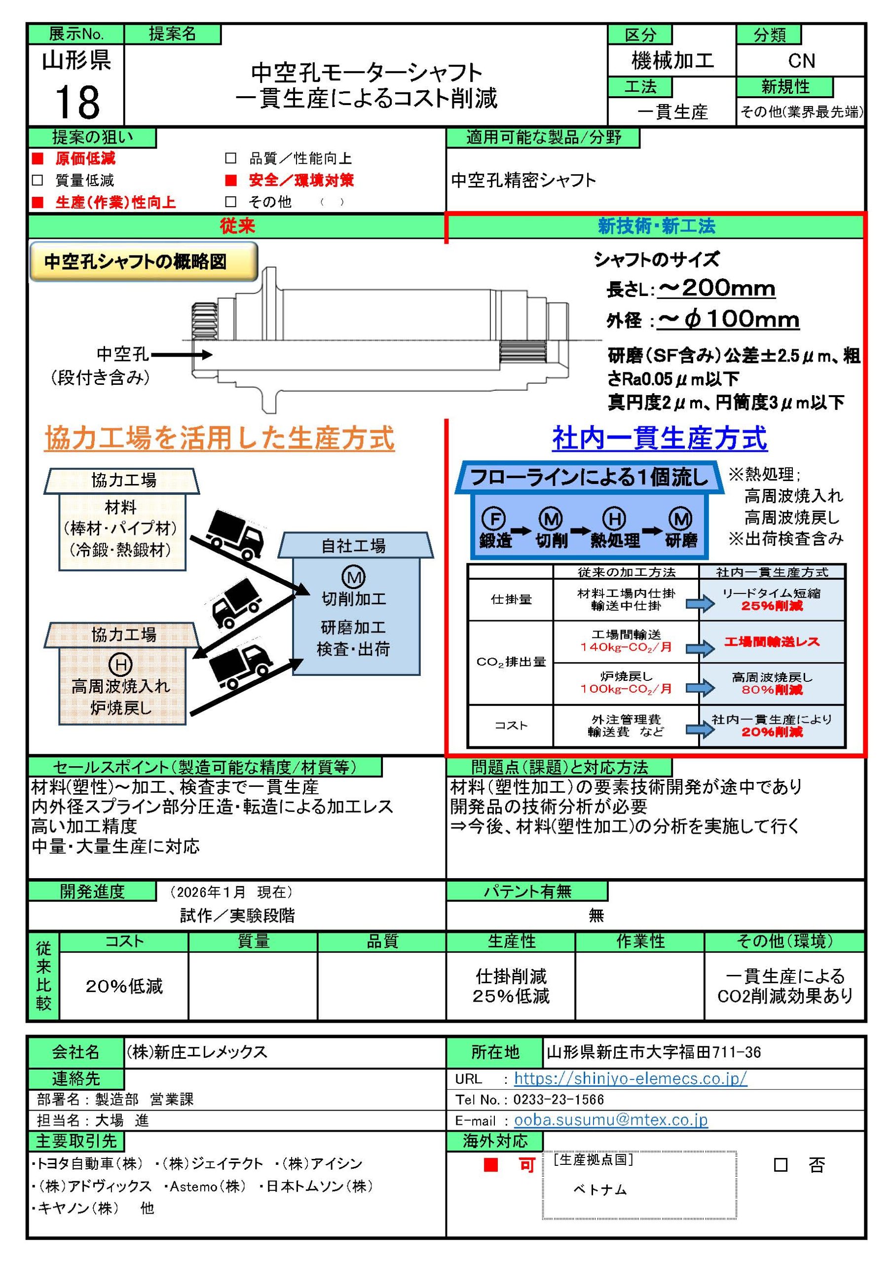中空孔モーターシャフト 一貫生産によるコスト削減