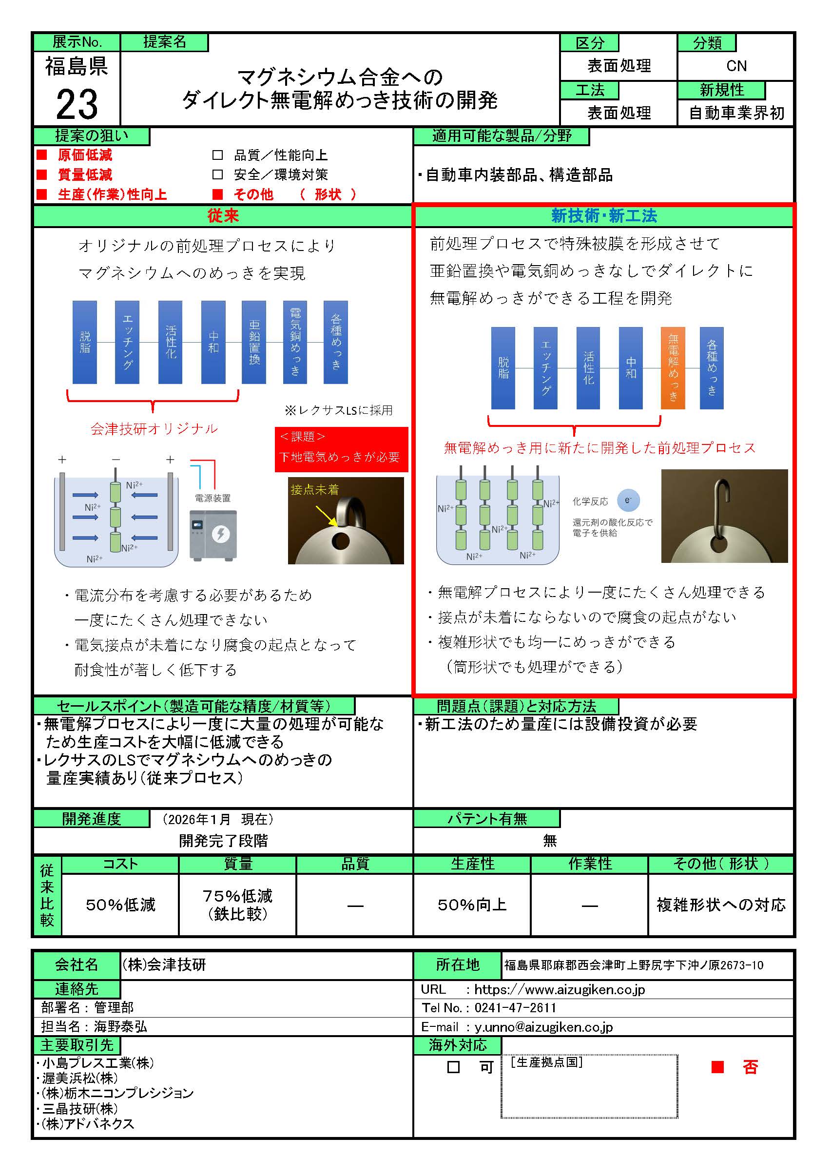 マグネシウム合金へのダイレクト無電解めっき技術の開発