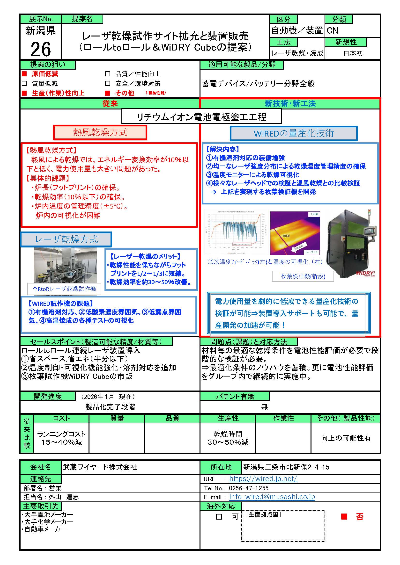 レーザ乾燥試作サイト拡充と装置販売 (ロールtoロール&WiDRY Cubeの提案)