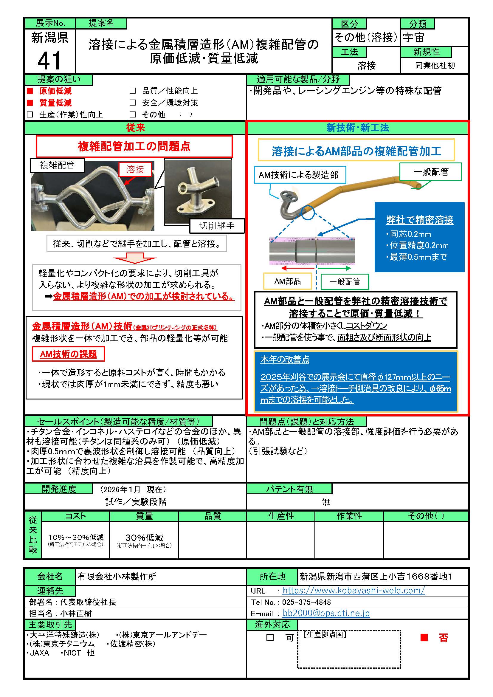 溶接による金属積層造形(AM)複雑配管の原価低減・質量低減