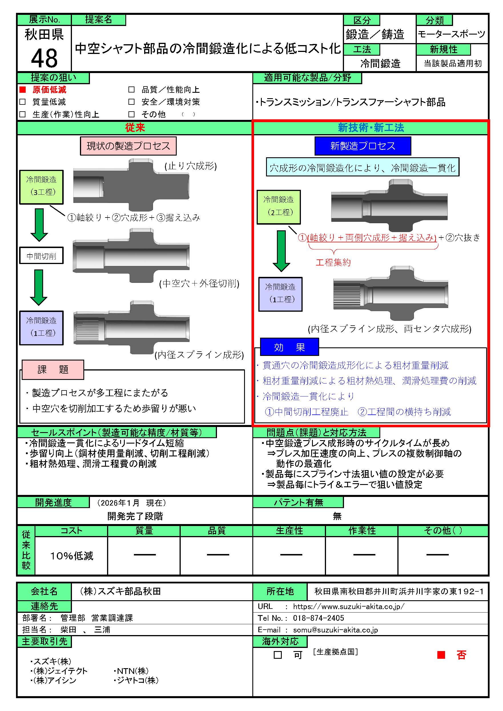 中空シャフト部品の冷間鍛造化による低コスト化