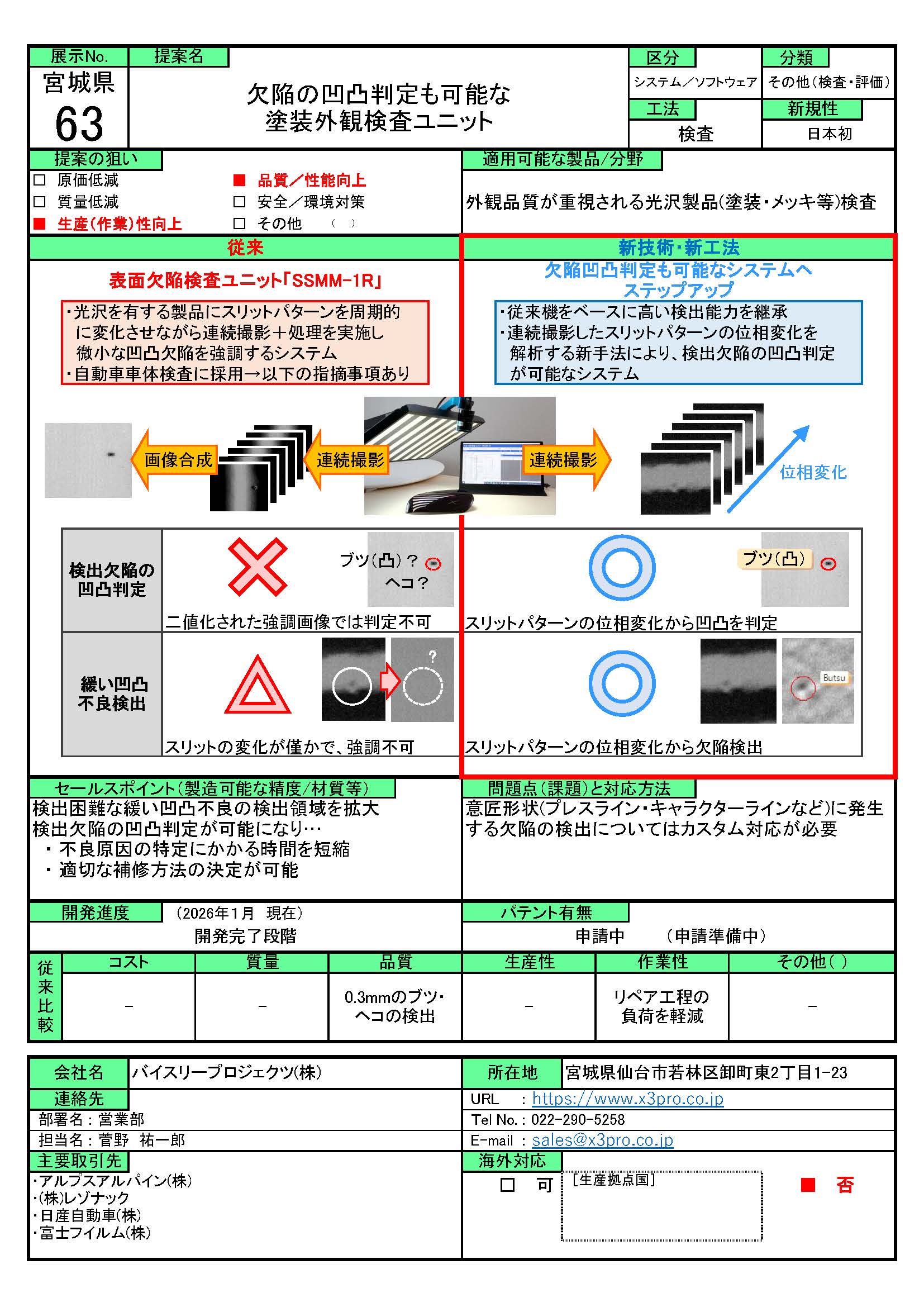 欠陥の凹凸判定も可能な塗装外観検査ユニット