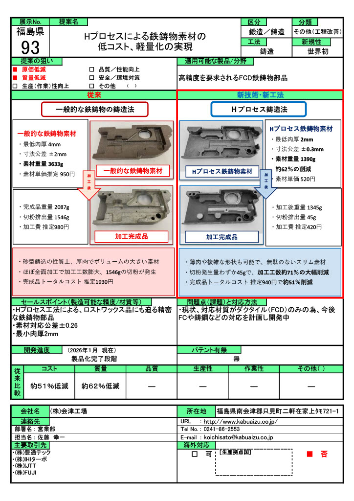 Hプロセスによる鉄鋳物素材の低コスト、軽量化の実現