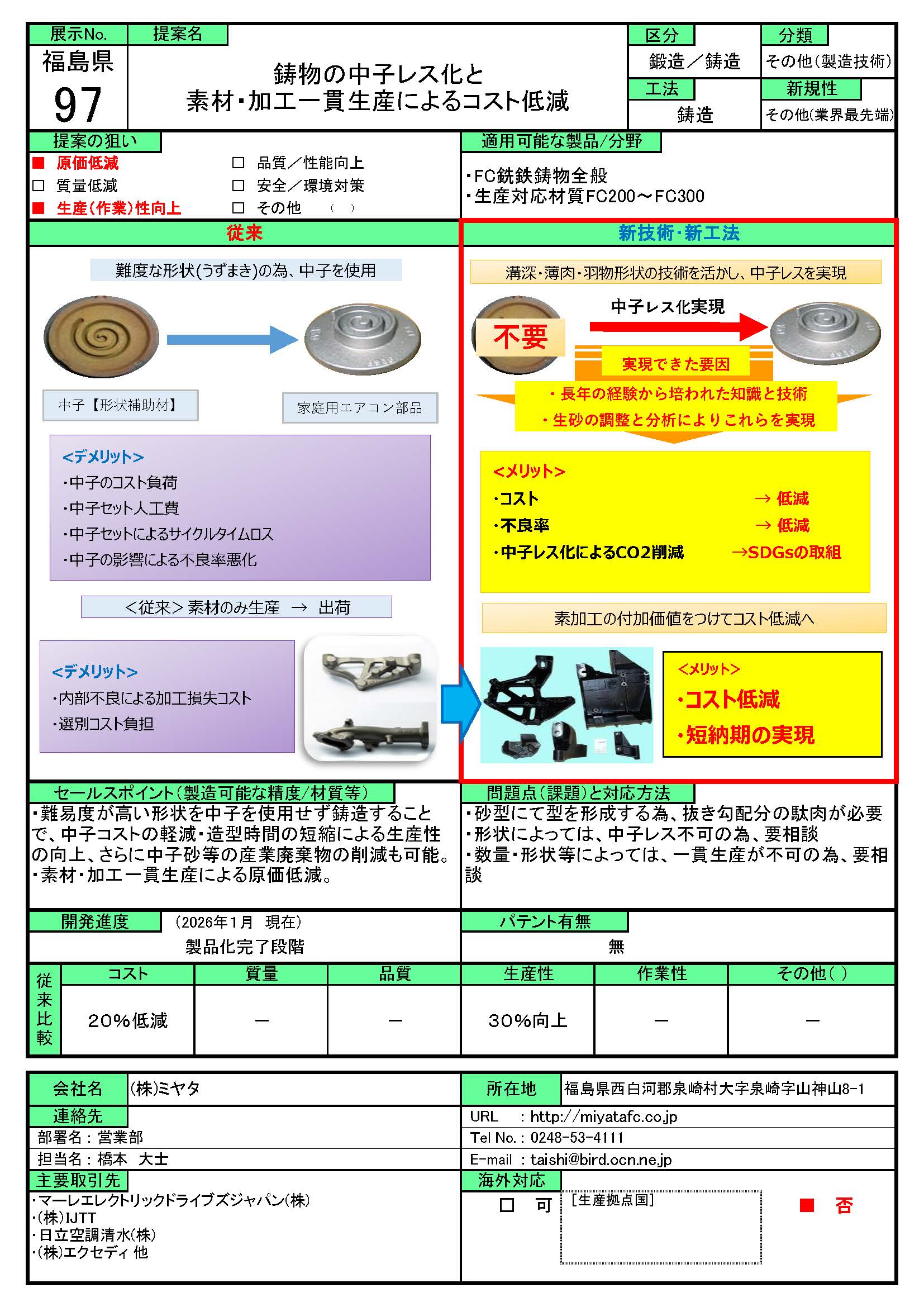 鋳物の中子レス化と素材・加工一貫生産によるコスト低減